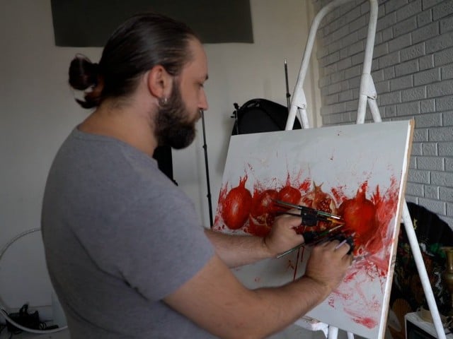 ملیے ایسے مصور سے جو پینٹنگ کیلئے 10 برش ایک ساتھ استعمال کرتا ہے