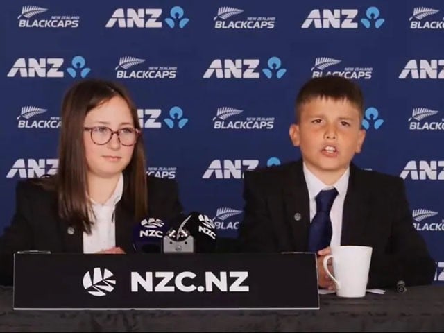 سوشل میڈیا پر شیئر کی گئی ایک ویڈیو میں نیوزی لینڈ کرکٹ بورڈ نے بتایا کہ ٹیم کے اعلان کے لیے دو بچوں کو پریس کانفرنس کے لیے بھیجا تھا۔ ایک بچے کا نام انگس جب کہ بچی کا نام ماٹلڈا ہے۔